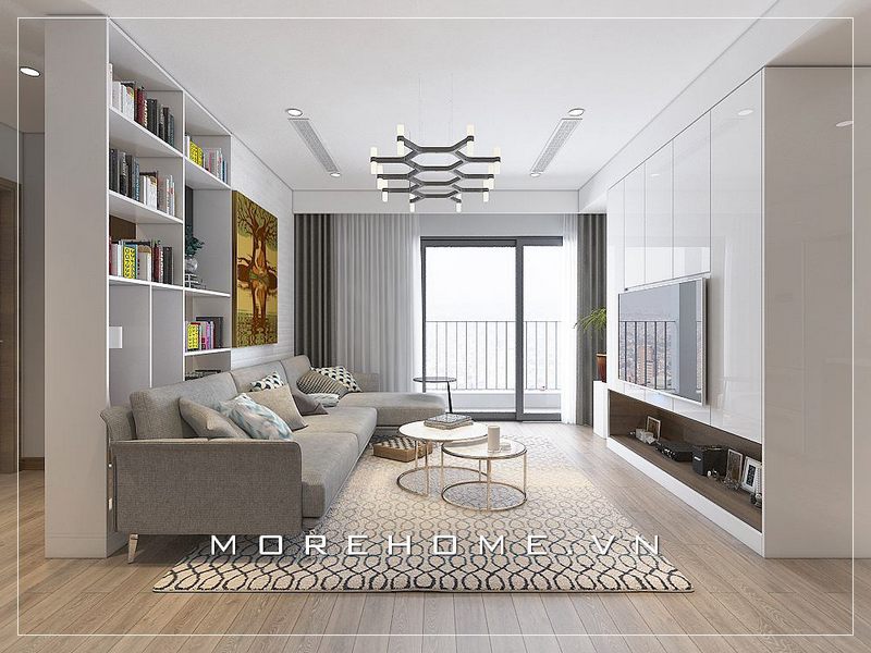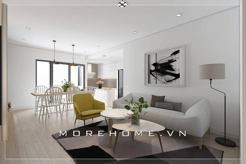 Thiết kế nội thất phòng khách chung cư đẹp hiện đại với các tone màu đơn giản, đồ nội thất thiết kế tối giản