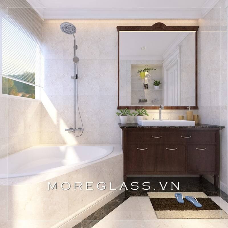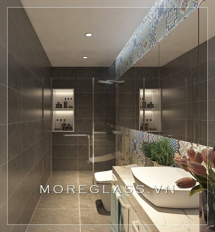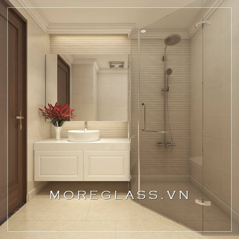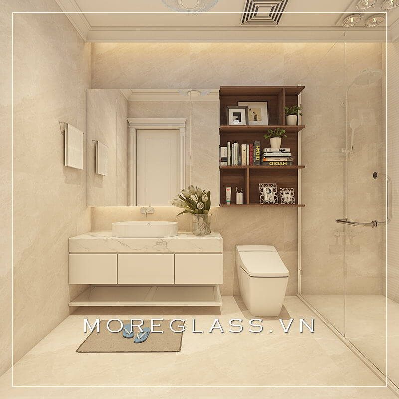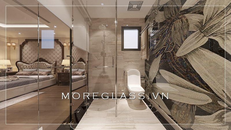 Thiết kế phòng tắm đẹp sử dụng kính cường lực cao cấp ngăn nước hắt ra nội thất mang đến sự sang trọng, độc đáo