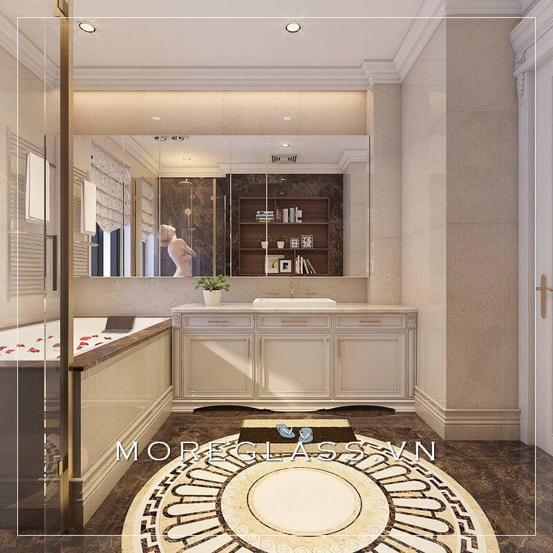 Mẫu thiết kế phòng tắm nhỏ gọn cho phòng ngủ biệt thự tân cổ điển cao cấp