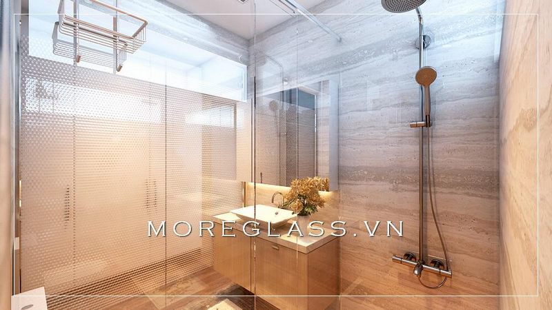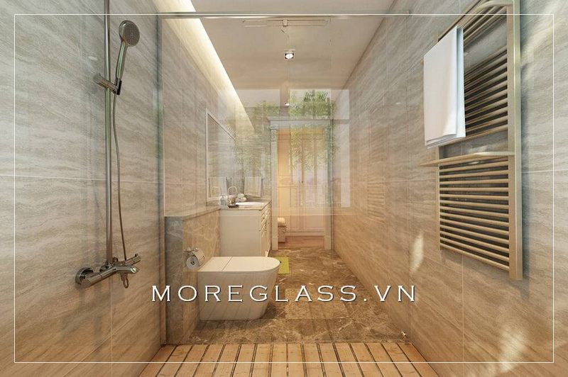 kính cường lực ngăn cách hai khu vệ sinh và tắm nhẹ nhàng mà tinh tế
