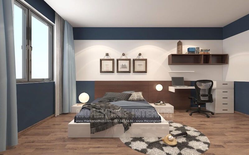Gợi ý mẫu giường ngủ gỗ công nghiệp phong cách hiện đại kết hợp ngăn kéo đầy tiện dụng tại phòng ngủ con trai