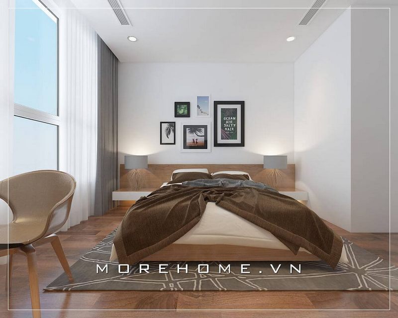 Mẫu giường ngủ chung cư gỗ công nghiệp với lối thiết kế hiện đại, đơn giản nhưng vẫn mang lại nét thanh lịch và sang trọng cho không gian phòng ngủ