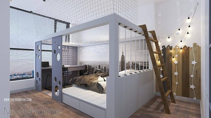 Thiết kế nội thất phòng ngủ chung cư hiện đại cho bé.