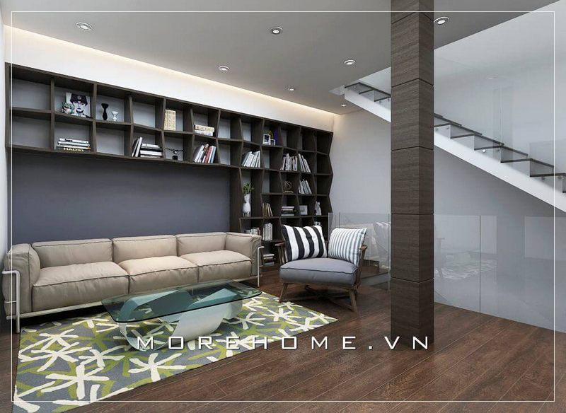 Mẫu kệ tủ sách được thiết kế âm tượng tạo không gian rộng, thoải mái hơn cho phòng làm việc