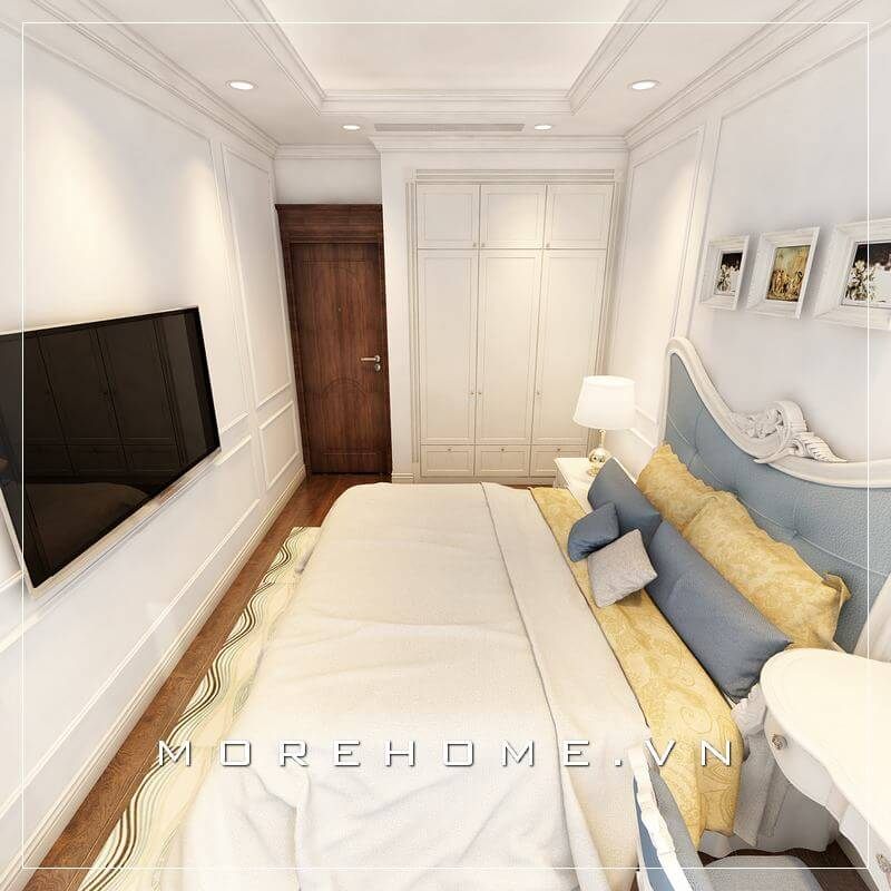 khiến không gian căn phòng trở nên rộng rãi hơn rất nhiều. Gam màu trắng phù hợp với mọi độ rộng hẹp của không gian, làm sáng bừng cả một góc phòng