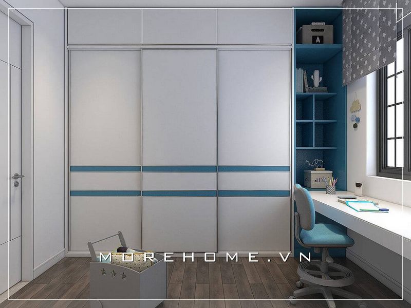 Tủ quần áo gỗ công nghiệp giá rẻ với gam màu trắng nhẹ nhàng được gia chủ lựa chọn cho phòng ngủ của 2 bé trai