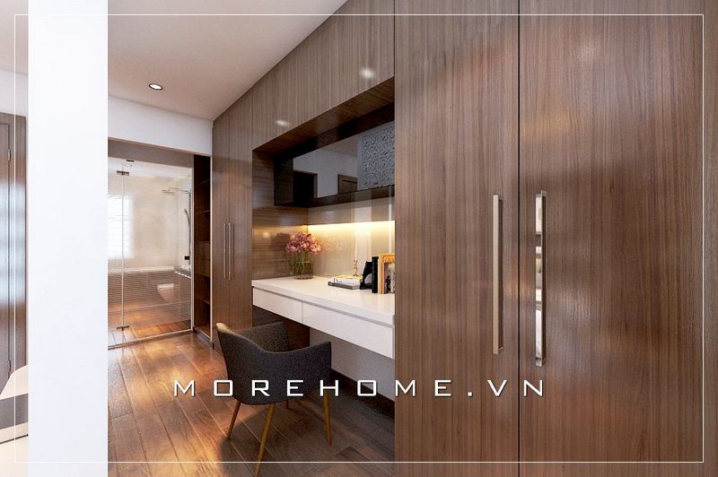 Mẫu tủ áo cánh đôi hiện đại kết hợp bàn trang điểm đầy ấn tượng và cá tính