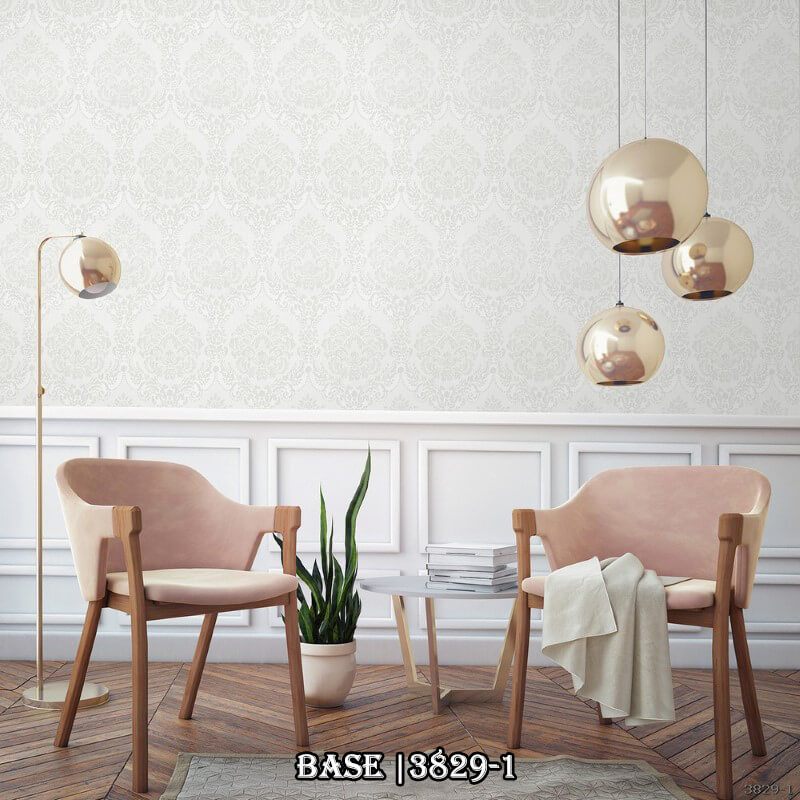 Mẫu giấy dán tường tân cổ điển với tông màu xám trắng nhẹ nhàng, phù hợp với những ai ưa thích nét hoài cổ pha lẫn hiện đại.