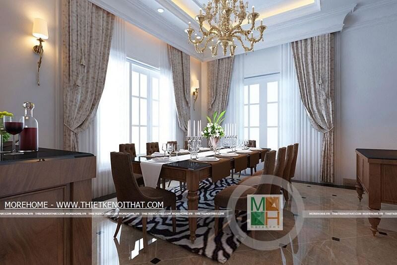 Thiết kế nội thất cổ điển để tạo nên một không gian ăn uống sang trọng và đẳng cấp trong biệt thự.